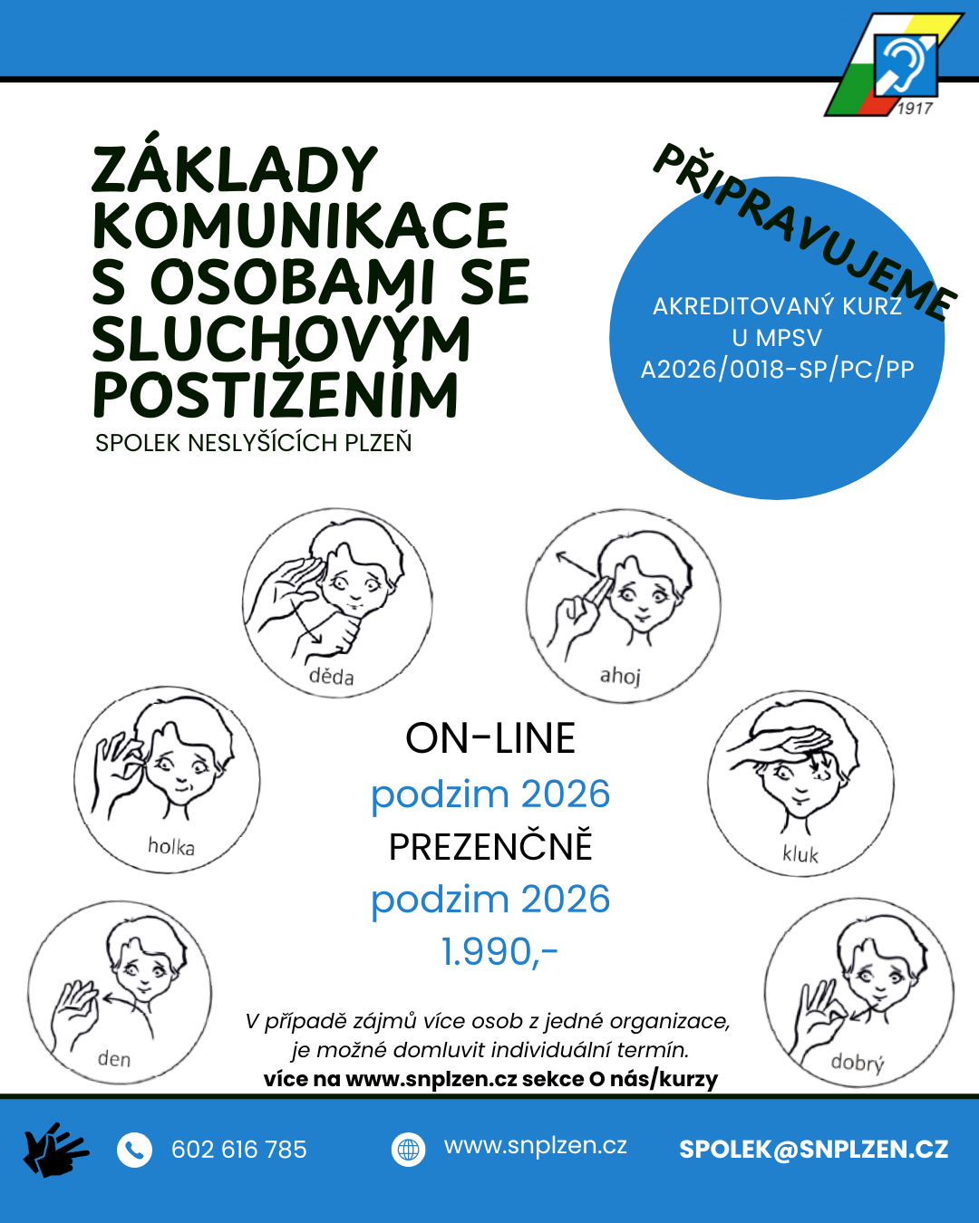 Kurz českého znakového jazyka a kurz základy komunikaci s osobami se sluchovým postižením